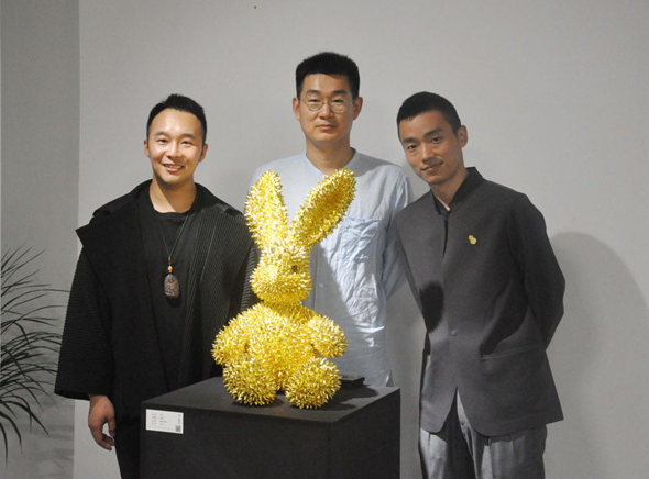 展览现场中,金光闪闪的《兔子》和《泰迪熊》,用熟铜搭配金箔精心雕琢而成,极具吸引力,是艺术家张勇专为本次艺术展定制的展品。张勇在本次展览中出展的《行者武松》与《鲁智深》两幅雕塑作品,则是对经典名著《水浒传》的创意解读,直指人物内心,又映射生活处境,很容易引发共鸣。