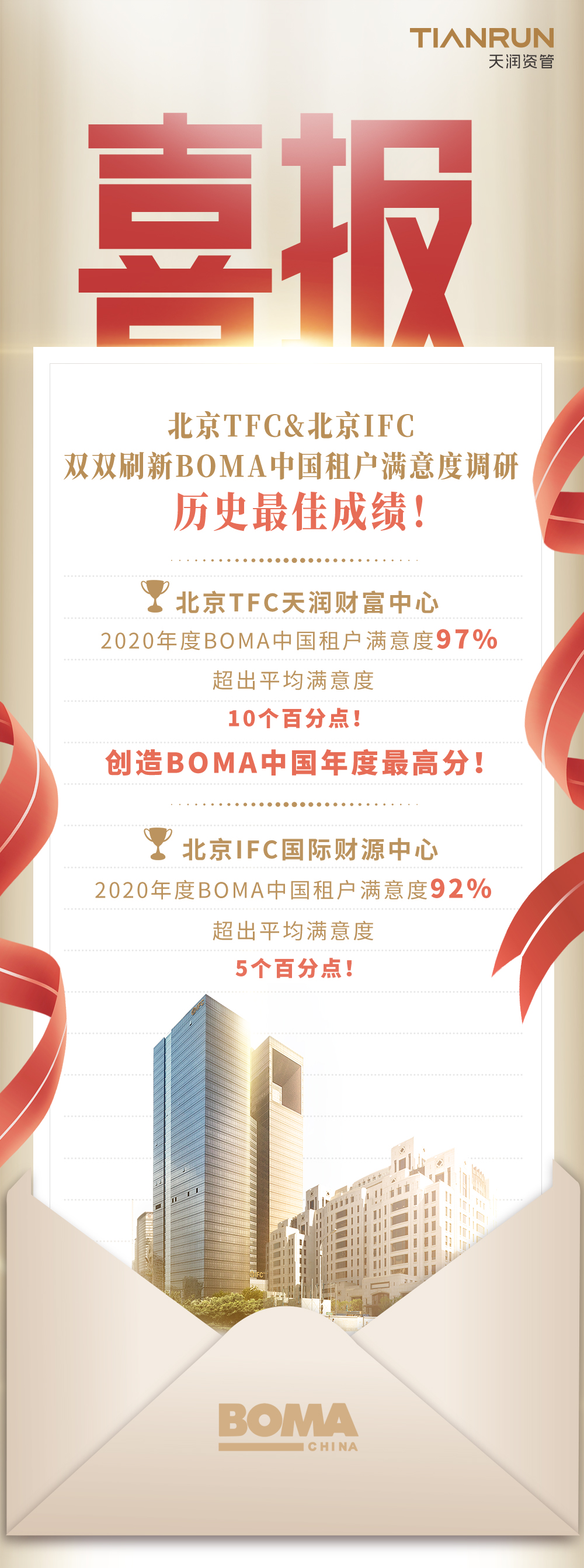 作为中国商业地产资产管理领域的建设者和领跑者,天润资管直面2020年经济下行、国内外环境纷繁复杂以及疫情常态化防控等多重挑战,深耕笃行,创新突破。整合租赁、运营、物业、社群、品牌等全方位服务,形成完整的系统化资产管理体系。旗下核心资产更在2020年BOMA中国租户满意度调研中勇创佳绩,再次实现自我超越!